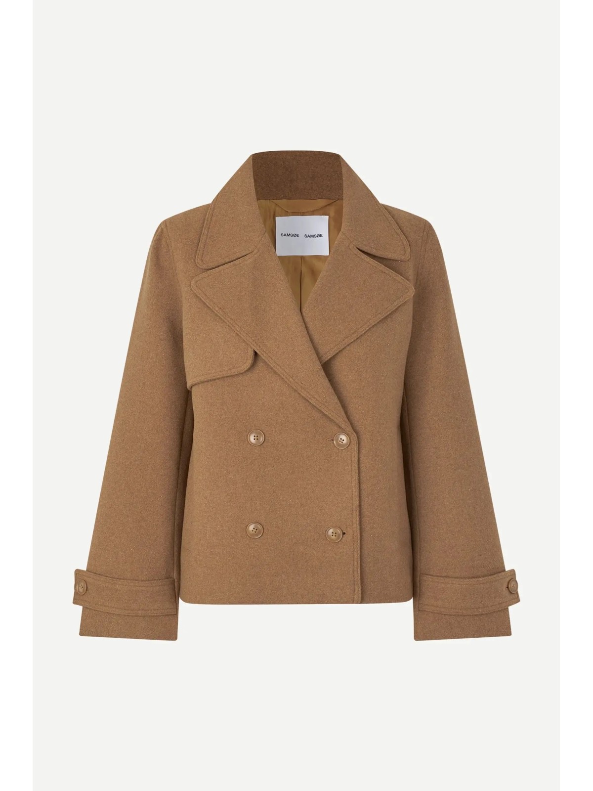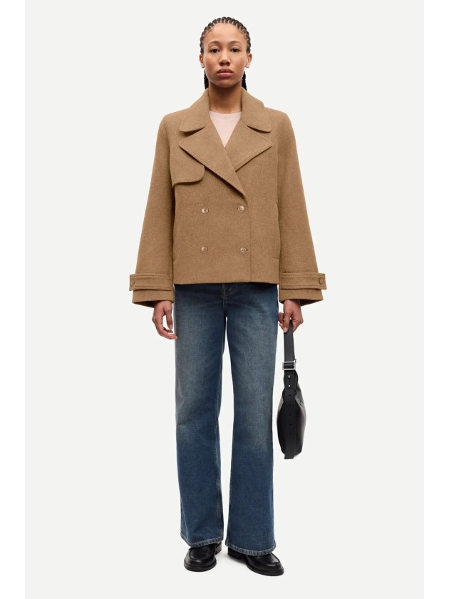 Chaqueta de fieltro de corte regular. Cierre cruzado con botones en la parte delantera. Cuello con solapas de muesca. Bolsillos de ribete delanteros y bolsillo de ribete interior. Solapa cortavientos en un hombro. Puños ajustables con botones