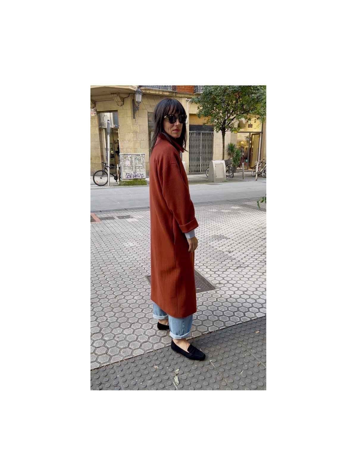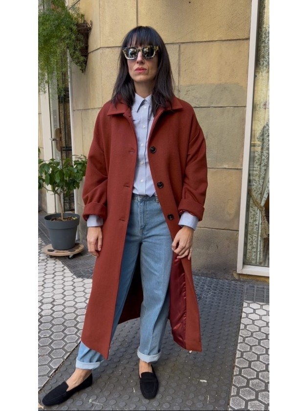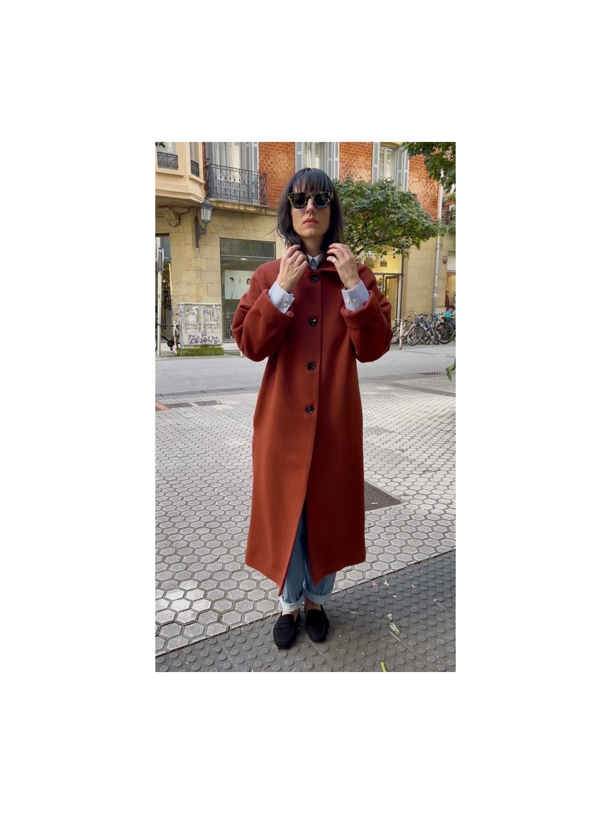 Abrigo recto con solapas de muesca y cierre de botones. Estilo de un solo pecho con bolsillos laterales insertados y abertura en la parte posterior. Forrado.