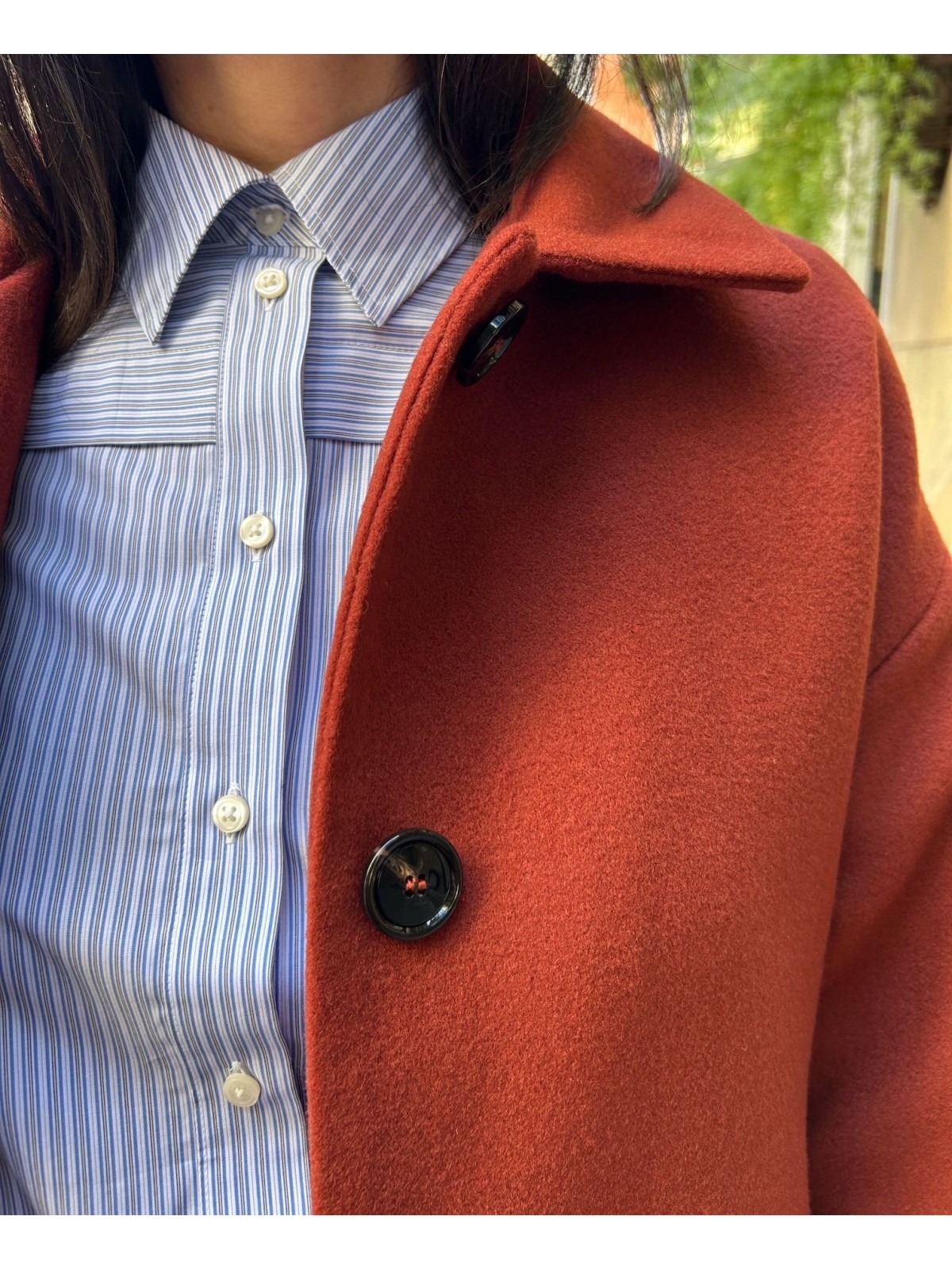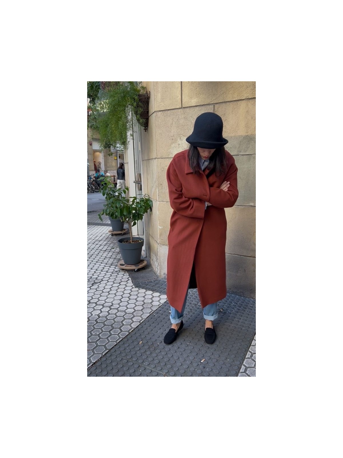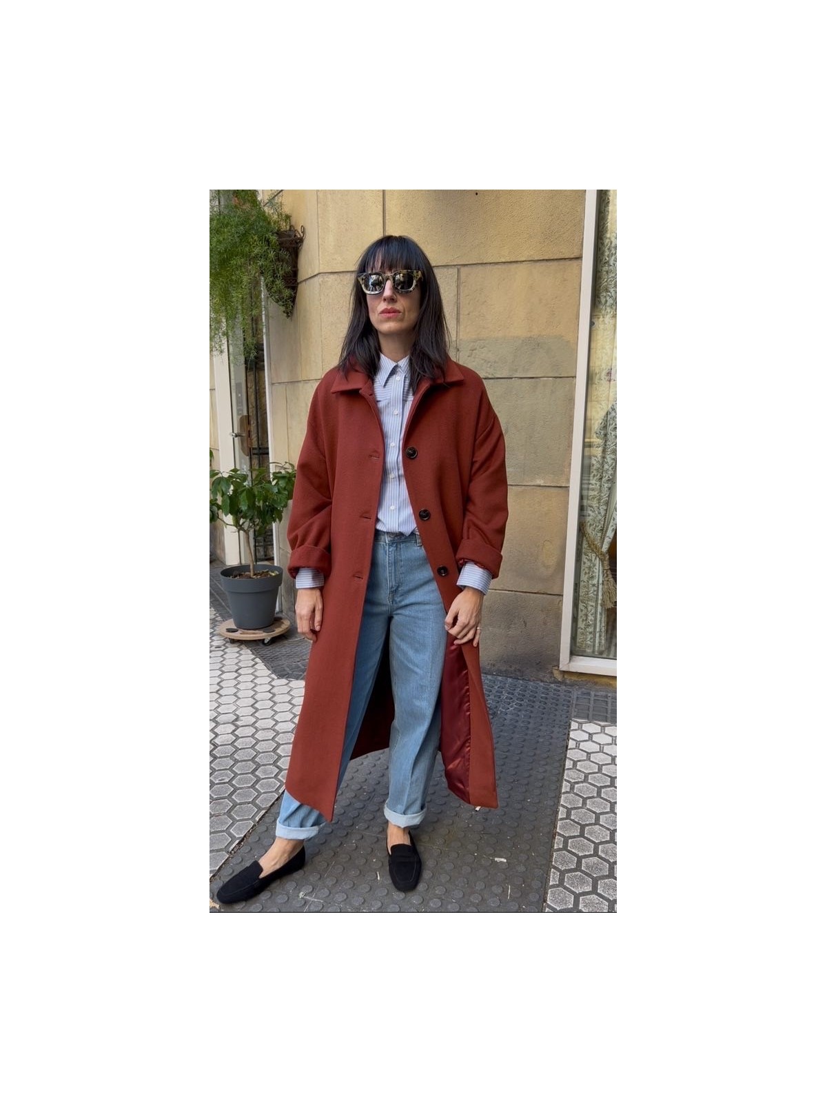 Abrigo recto con solapas de muesca y cierre de botones. Estilo de un solo pecho con bolsillos laterales insertados y abertura en la parte posterior. Forrado.